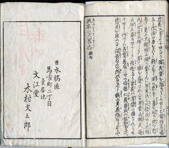 を加え、内題に象眼して「里見八犬伝 曲亭馬琴識[印]」とした上で、刊記を